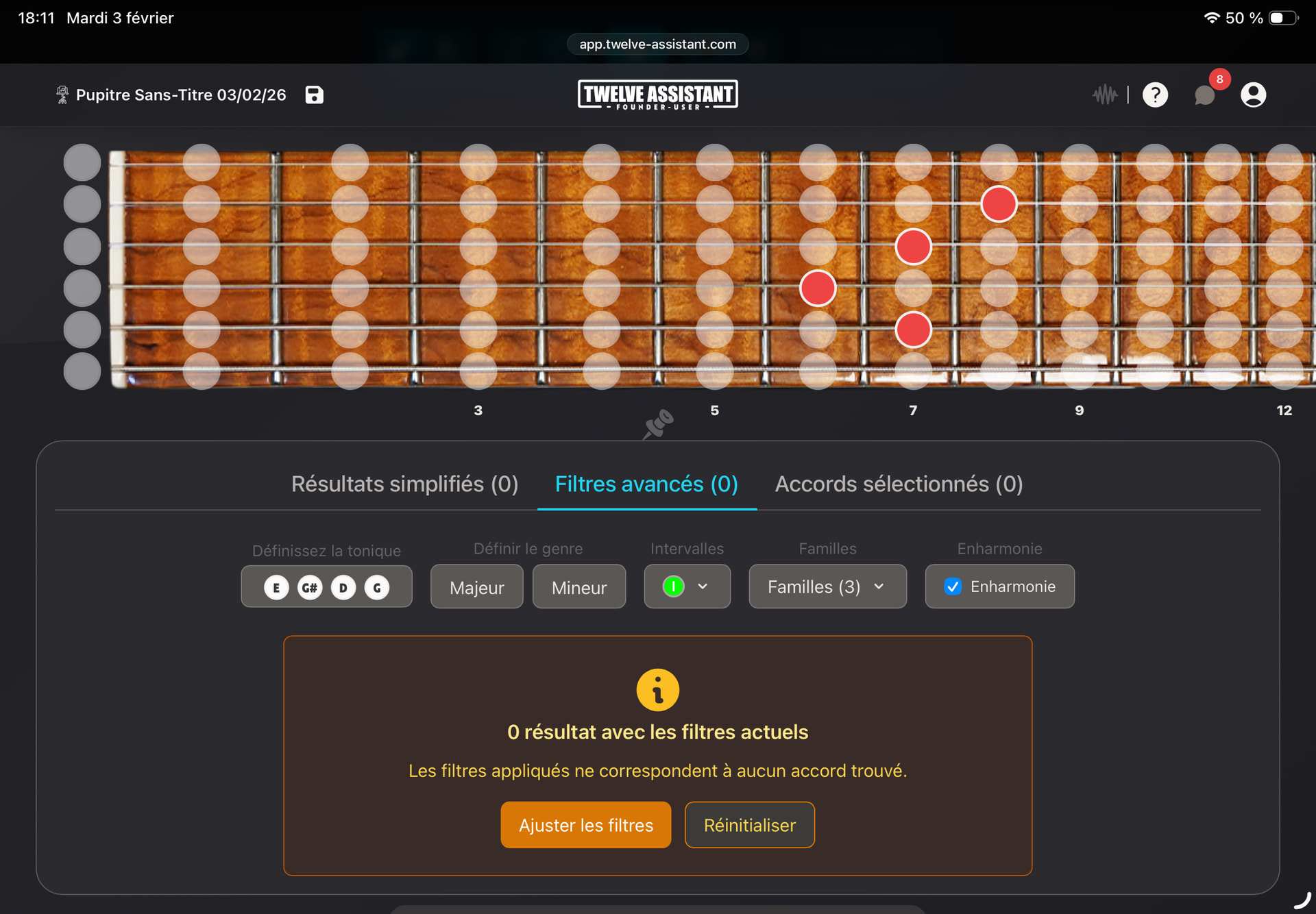 Si l’accord de Hendrix n’apparaît pas, c’est simplement parce que les accords altérés sont désélectionnés par défaut dans la recherche, afin d’éviter d’afficher des noms complexes (comme #9, b13, alt…) aux musiciens moins avertis. L’accord de Hendrix est bien un E7(#9), il suffit donc d’activer les accords altérés pour qu’il apparaisse.