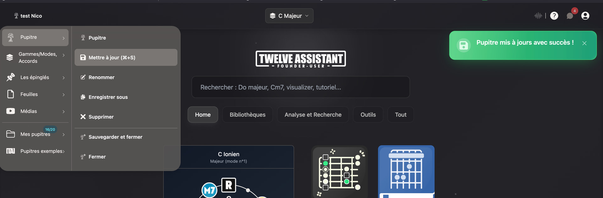 Par contre il ne faut pas oublier de faire une mise à jour du pupitre, surtout avant de quitter le Twelve, sinon tu perds tout à la prochaine connexion.