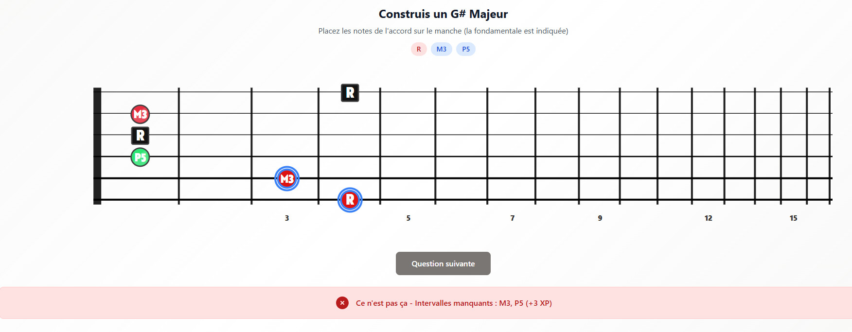 Il y a des erreurs de notation de note. exemple sur la tonalitĂ© de Re# majeur, il est indiquĂ© dans les choix pour le VII degrĂ© RĂ©, ce qui est impossible puisquâil y a dĂ©jĂ un rĂ© dans la gamme, câest Do double diĂšse, la sensible de RĂ©#. Câest Ă©videmment la mĂȘme note que rĂ© sur le manche ou sur le clavier, mais dâun point de vue harmonique, câest faux.