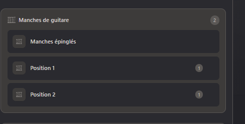 J’ai commencé avec la première position soit le C et j’ai inséré une partie du manche de guitare qui corespond à cette position grace à l’onglet épinglé. Mais lorsque je veux faire la même chose avec la suivante, soit le D. J’ai soit les deux positions enregistrées, soit si j’éliminine la première, je n’ai que la seconde enregistrée sur les deux feuilles. Le problème vient du menu épinglé qui ne permet pas de selectionner une seule partie du contenu. Alors ma question est : Est ce qu’il est possible de pouvoir selectionner une partie seulement du contenu dans ce qui est épinglé ?